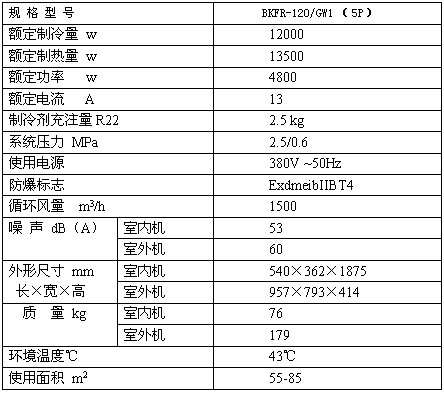 BKFR-120/GW1柜式防爆空調(diào)技術(shù)參數(shù)