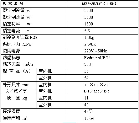 BKFR-35/LW2防爆空調技術參數