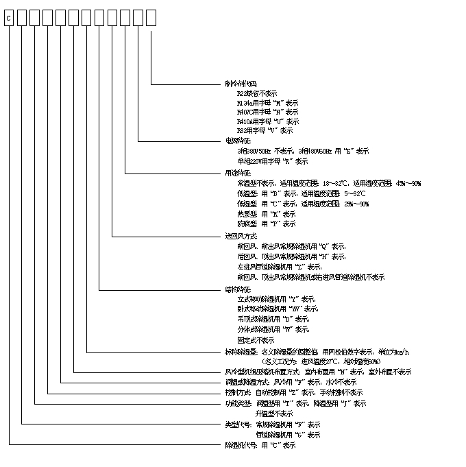 zhongyou/上海眾有除濕機產(chǎn)品型號表示方法
